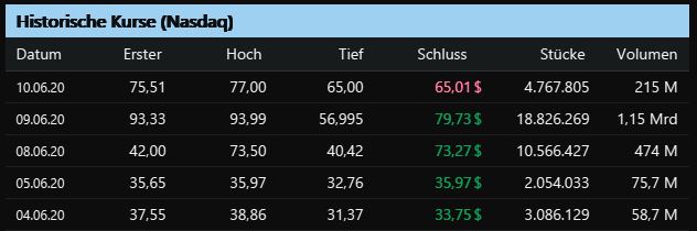 ist eigentlich auch einer meiner Idole. Aber ich finde man sollte sich als CEO von einer Weltfirma schon anders verhalten. Trevor Milton geht das schon professioneller an. Wenn ein Elon sich regelmäßig Benzodiazepinhaltige Substanzen mit Alkohol reinpfeift, dann wundert es mich auch nicht wenn er nicht in der Lage ist, in Interviews unter Beweis zu stellen, dass sein Hirn nicht schnell logisch verarbeiten kann. Das habe ich aber bei Trevor schon gesehen. Der Mainstrain schreit ja gerade nach TESLA HUI, NIKOLA PFUI, aber das sind bei Tesla investierte und Frustrierte weil sie viel Geld bei Nikola hätten machen können und nun zögern diese, weil es vorher ja viel mehr Profit hätte sein können. Ich bin zwar auch ein Zocker: Montag bei 65 $ gekauft und bei 88 $ geschmissen und wieder eingekauft bei 70 und bei 80 verkauft und nun bin ich bei 77 drin, weil ich fest überzeugt bin über lang da Profit zu machen. Das Geld benötige ich zur Zeit eh nicht, also kann ein ein Shorttrade auch mal zum Longinvest machen. Viel Glück euch Leute und seit nicht zu gierig.