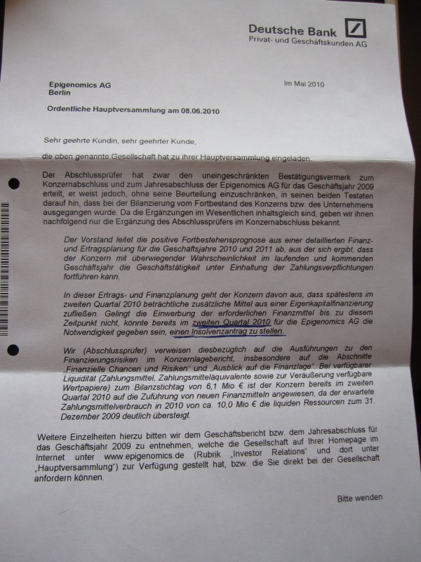Fundamental hat sich ja nichts neues ergeben, was die Erwartungen bzgl. Epigenomics negativ verändert haben könnte. In so fern müssen wir das jetzt wohl einfach aussitzen!