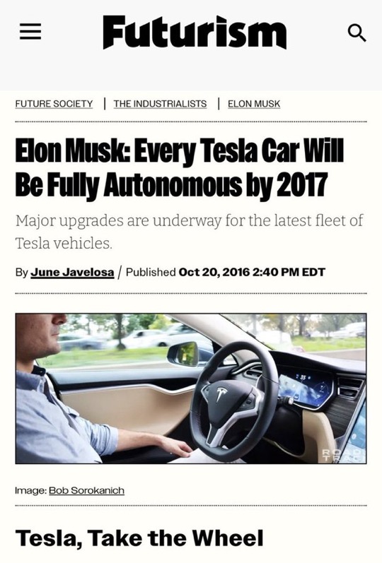 Der Guru BEHAUPTET, in CIRCA 3 Wochen fahren Robotaxis ohne Begleitfahrer. Übersehen wird dabei, daß es auch keine Passagiere geben wird (wenn es denn wahr wird), die Autos fahren also völlig leer. Das sind einfach nur Testfahrten, vermutlich mit Fernüberwachung und evtl. Fernsteuerung.