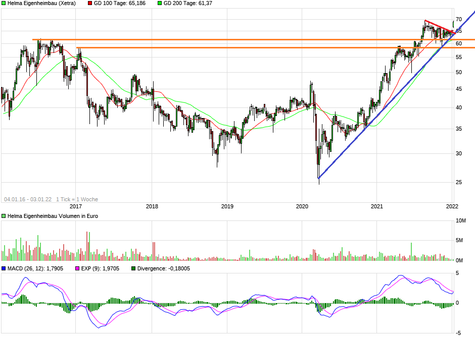weiterhin zum Kauf der Aktie des Baudienstl­eisters HELMA Eigenheimb­au AG (ISIN: DE000A0EQ5­78, WKN: A0EQ57, Ticker-Sym­bol: H5E).