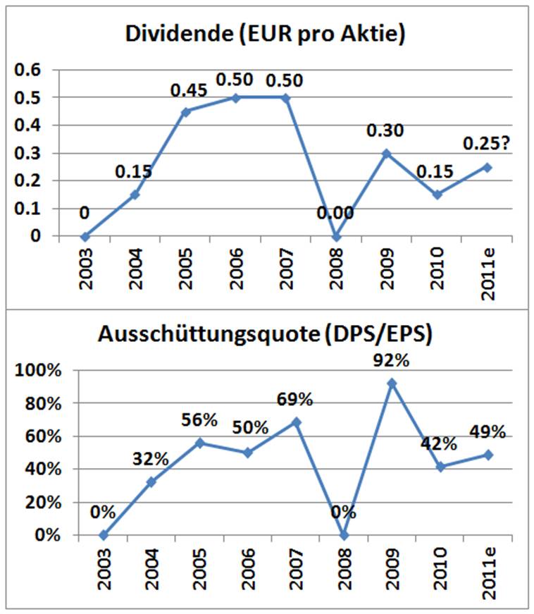 (per 09/2010: 1,72 Mio. EUR/149%). Das Ergebnis je Aktie beträgt 0,36 EUR