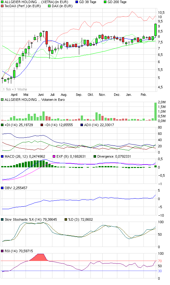 01.03.2010 (www.4investors.de) Nach den (von Allgeier veröffentlichten) vorläufigen Zahlen erhöhten die Analysten (der UniCredit) die Gewinnerwartungen. Für 2010 gehen sie von einem Plus je Aktie von 1,48 Euro aus