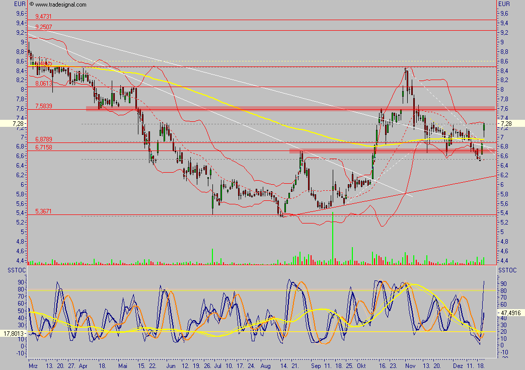 wieder drehen können, ich hatte es eigentlich über 7,00 positiv interpretiert, allerdings geben die beiden letzten Handelstage Anlass, zumindest vorsichtig zu sein und abzusichern.