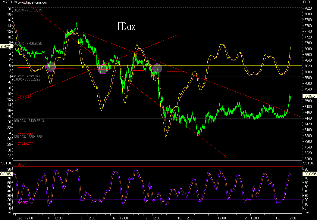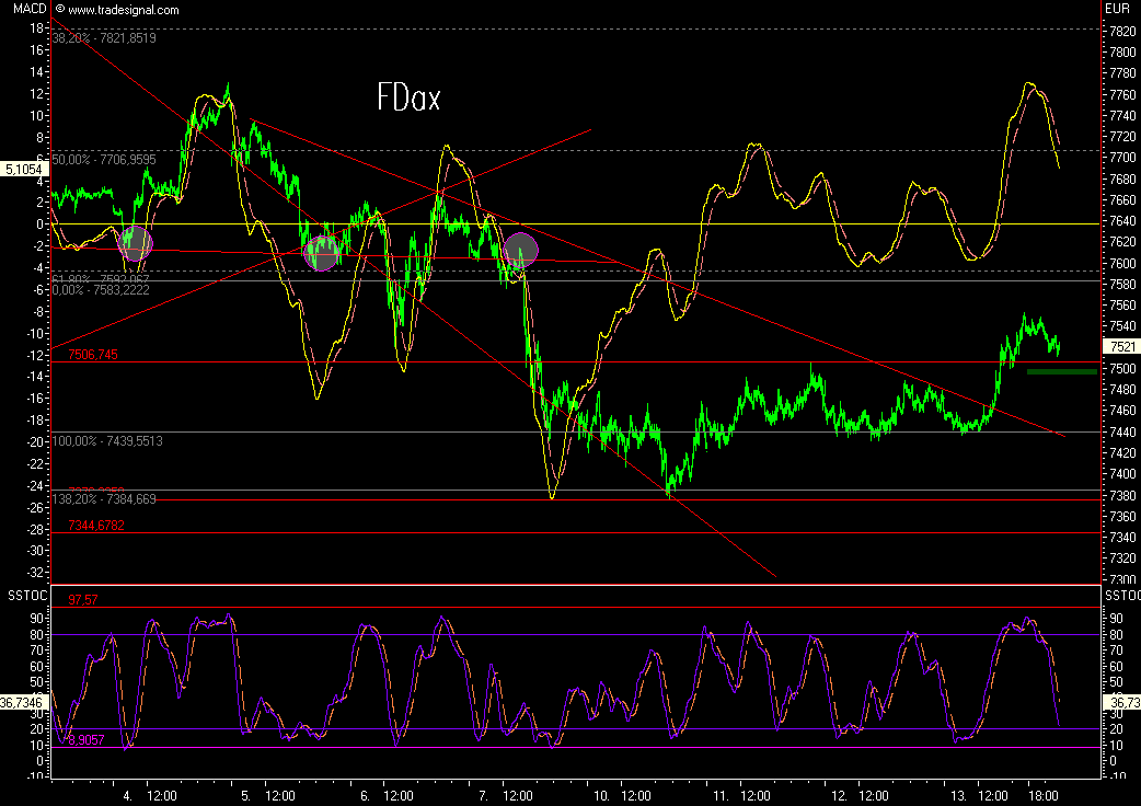 Hoch knapp rausnehmen können, der Dowfuture steht 120 Punkte höher, ich gebe hier also derzeit allenfalls eine Teilposition