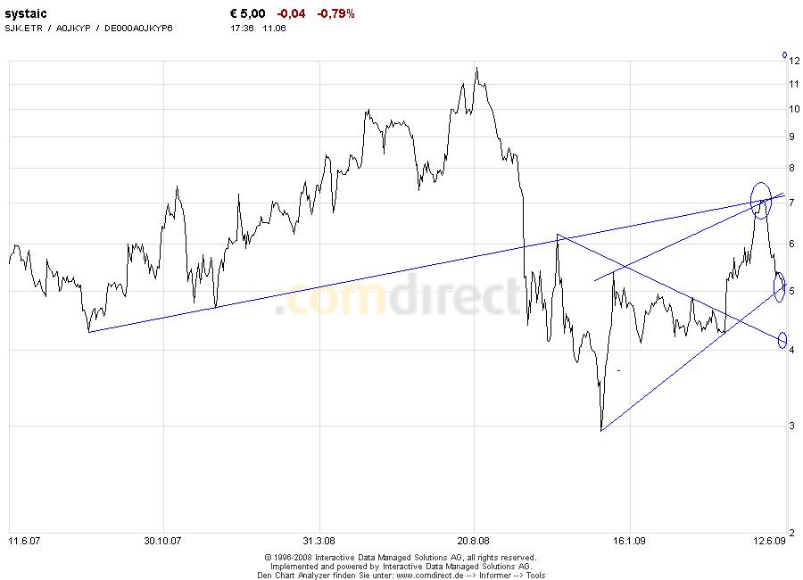 Hoffentlich ist das nicht wieder der Anfang vom Ende des Aufschwungs, wie letztes Jahr als Systaic über 11€ notierte, um dann unter 4€ zurückzufallen.....