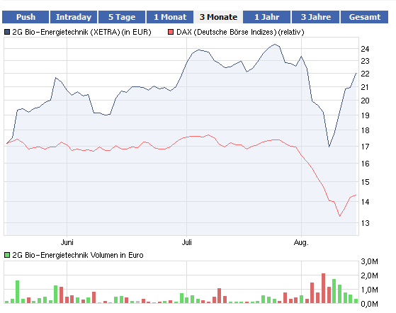 Bei 2G war es schon öfters so das wenn der DAX gut performt hat machten Sie Pause und an Tagen wo der Handel dahinplätscherte oder sogar ins Minus geht stieg die Aktien von 2G gut an.
