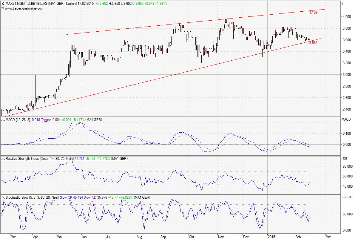 Chart verläuft wie im Lehrbuch und MACD jetzt mit Kaufsignal. Der Weg deutlich über 4€ könnte damit geebnet sein zumal die letzten Highs auch alle immer einen Ticker höher lagen als die voran gegangenen. In diesem Jahr sollen zudem gem. KC sämtliche Beteiligungen bis auf LSE schwarze Zahlen schreiben: