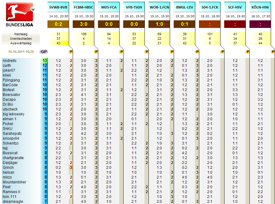 Talk- und Infothread zur 1.Bundesligatippgruppe