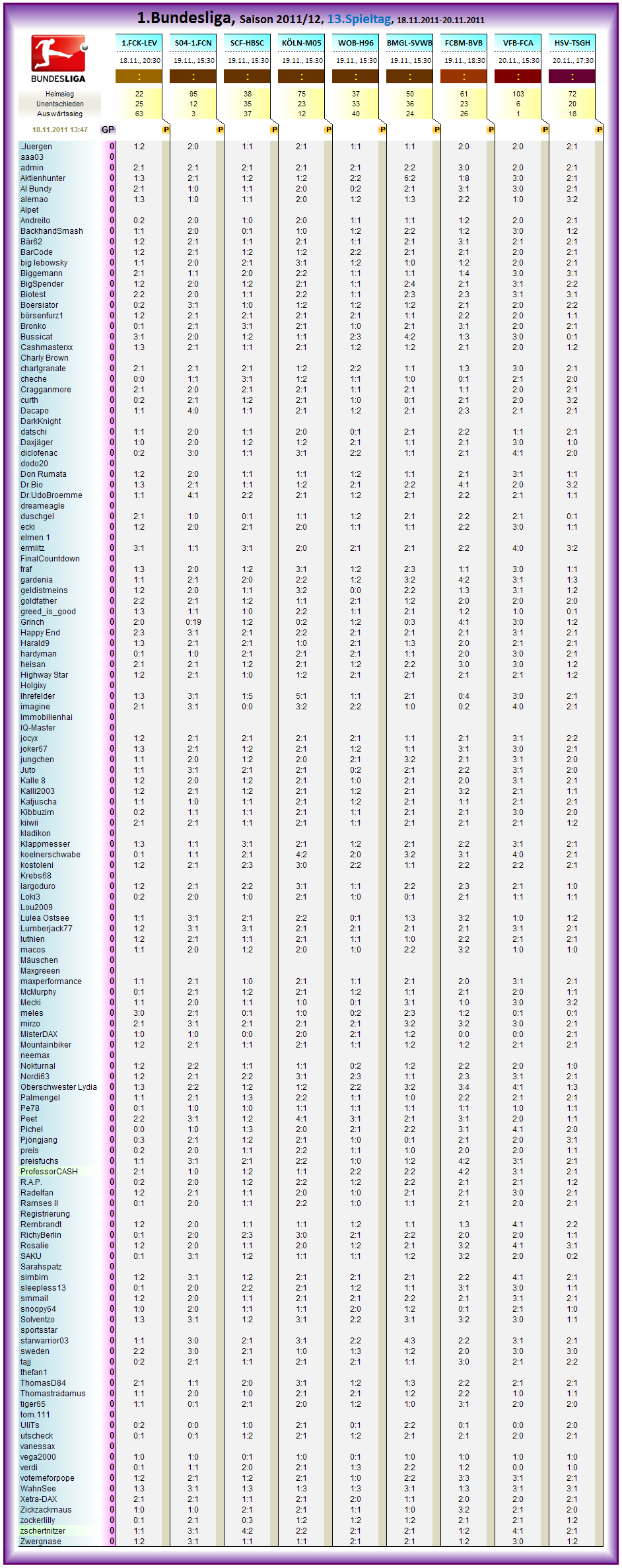 Gehts also mit insgesamt 117 Tipps bisher in den 13. Spieltag...