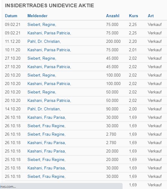 Insgesamt wurden am 9.2.21 150000 Aktien zu je 2,25 Euro verkauft.