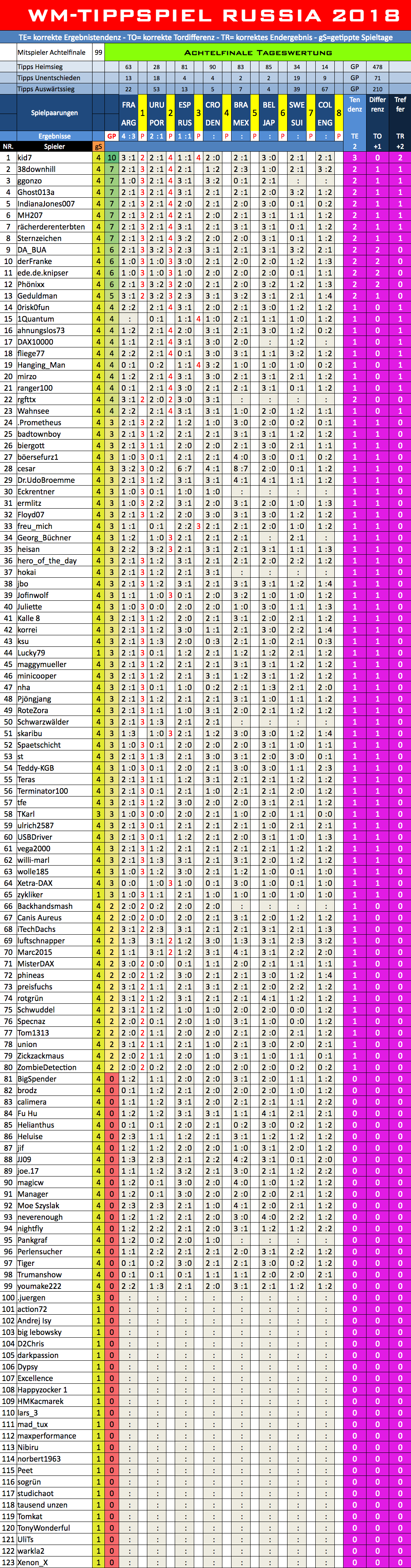 Wie immer bitte bis 1 Minute vor Anpfiff (Ariva-Zeit) der jeweiligen Partie