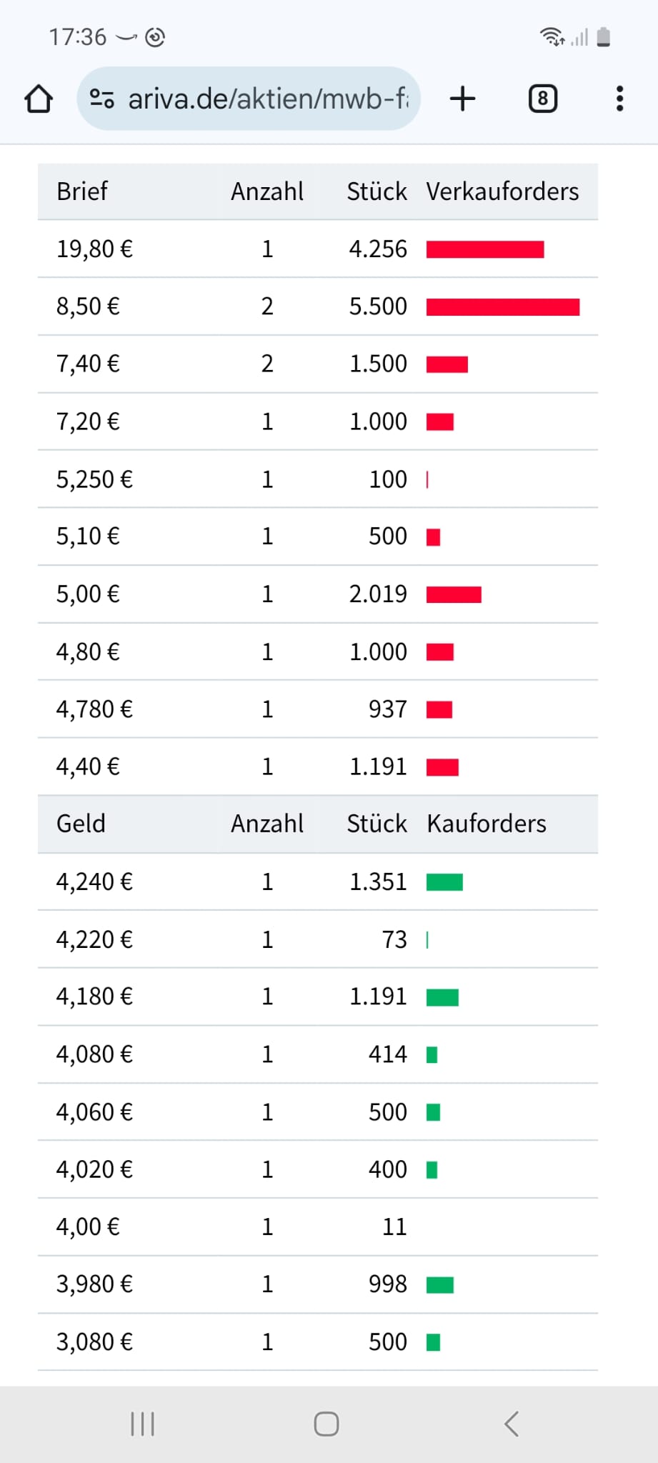 Auf Xetra werden noch knapp 1000 Aktien für 4,94 Euro angeboten, danach gibt es erst wieder welche für über 5 Euro.