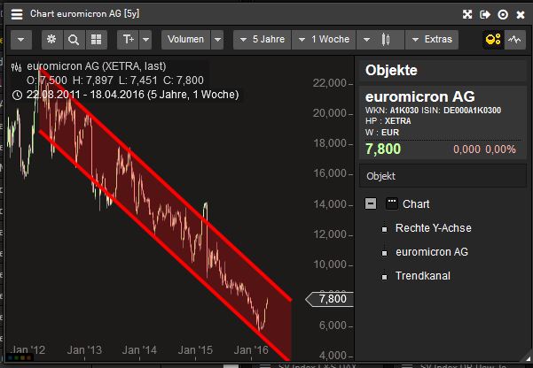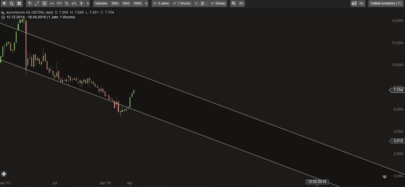 Nach jahrelanger Talfahrt überwand die Euromicron-Aktie jetzt ihren Abwärtstrend :D Der Abschlag zum Buchwert birgt viel Kurspotenzial.