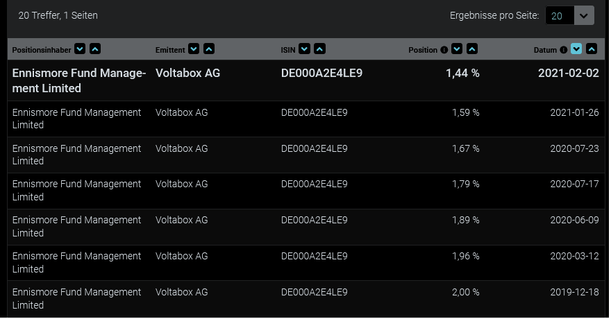 Kommt darauf an wie man "zügig" definiert. Die bauen ja schon seit Anfang März 2020 scheibchenweise ab und haben in der Zeit von ca. 11 Monaten ca 0,56% abgebaut und haben noch 1,44%. Ob die jetzt wirklich weiter die Taktung der Scheibchen-Eindeckung enger legen werden bleibt abzuwarten. Sicherlich wäre die potenzielle Fallhöhe bei Voltabox deutlich geringer, wenn ein solventer Investor die Paragon-Anteile übernimmt, der auch notfalls selber nachschließen kann. Wäre dann auch für LV unattraktiver. Da ist aber bislang kein finaler Vertragsabschluß zu sehen und es ist auch nicht bekannt wie der Name des Investors ist ( woraus man erschließen könnte wie finanzkräftig der ist). Sollte der Deal noch scheitern (bislang ja nur unverbindlicher LoI), dann sähe Voltabox auch schnell wieder ungesund aus. Solange es in der Schwebe ist, kann Ennismore ja dieses Tempo unaufgeregt beibehalten. Also mal abwarten, ob sich da endlich mal was belastbares tut in der nächsten Zeit bzgl. Anteilsweitergabe.