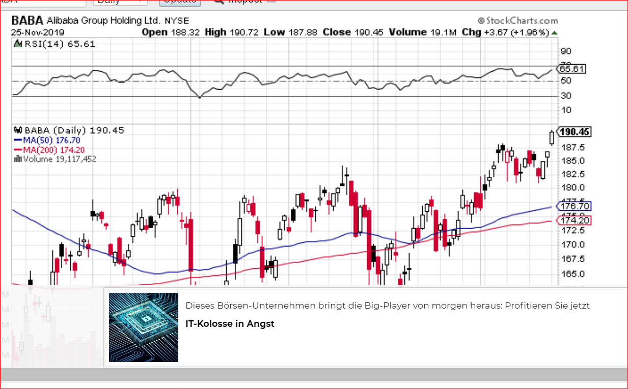 könnte es einen Ausbruch geben, 180 nachhaltig geknackt, nächstes Ziel 188,40, sollte das gelingen ist der Himmel offen, nächstes Ziel 230 Dollar......Indikatoren, geglückter Börsengang in HK, neue Geschäftsfelder, Weihnachtsfeier und Neujahrsgeschäft, Trump hält die Füsse still....alles gute Vorzeichen, jetzt noch eine gute Nachricht dann fliegt der Deckel....