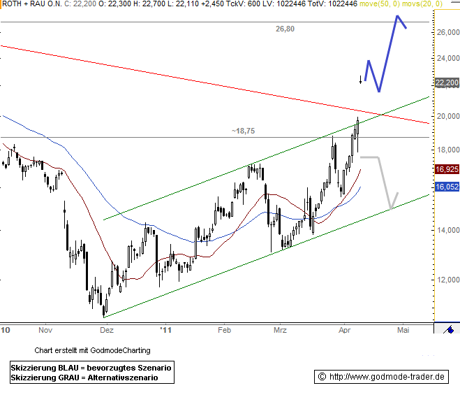 Rückblick: Einen massiven Kurssprung von deutlich mehr als 10% machen zum Wochenstart die Aktien von Roth & Rau, die damit nicht nur die aktuell größten Gewinner im TecDax sind, die damit auch ihren kurzfristigen Aufwärtstrend sehr dynamisch weiter fortsetzen. Gleichzeitig springt die Aktie damit auch über einen zentralen Widerstandsbereich von 18,75 Euro bis hin zu ca. 20,45 Euro, wo sich eine Reihe charttechnischer Hürden auf engem Raum bündelten. Damit unterstreichen die Käufer derzeit, wer in der Aktie das Sagen hat, wobei nun die Chance einer Rallybeschleunigung besteht.