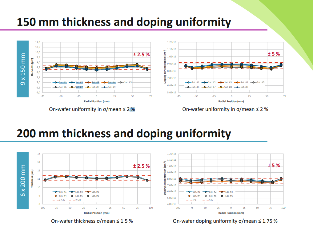 LPE does not separate the data for 150 or 200mm wafers so it is hard to compare the thickness uniformity with G10-SiC; they probably have similar performance. As for the doping uniformity the G10-SiC is definitely better.