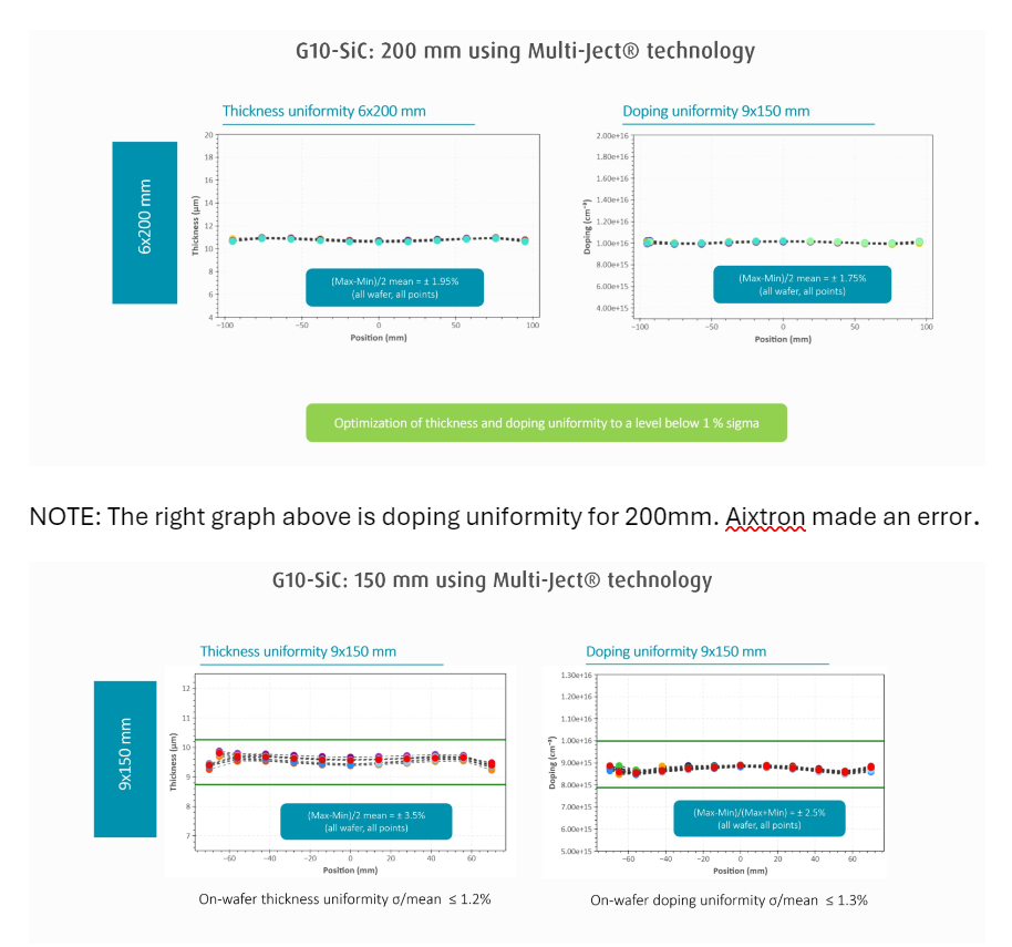 From above, Aixtron's thickness and doping uniformities (sigma/mean) are both < 1% for the 200mm.