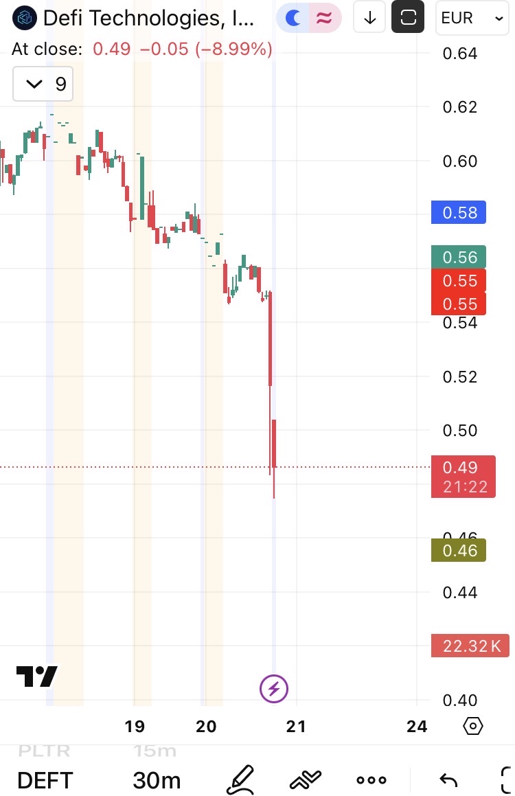 Defi hat ein Schreiben von der NASDAQ bekommen, dass der Aktienkurs an mind. 30 aufeinanderfolgenden Tagen unter dem Mindestpreis von $ 1,- liegt.