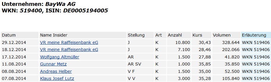 Kein Window Dressing Es haben ein paar Manager von Baywa die den Laden gut kennen sollten,