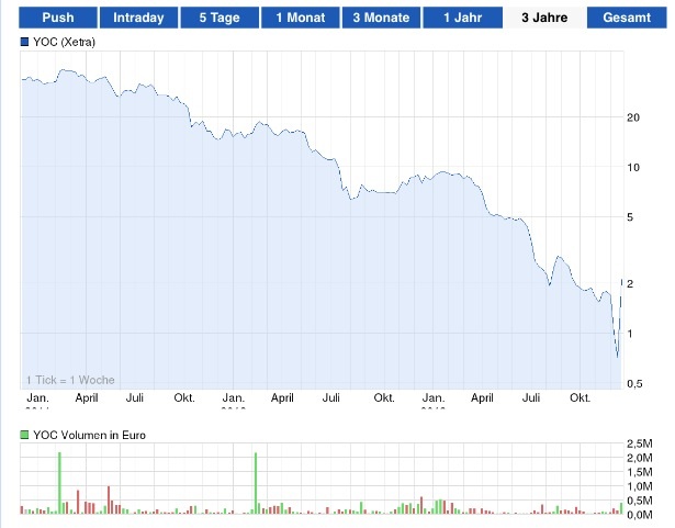 Typische abzocken Fall. Tages Hohe:2.45 und Tagestief 1,61. Riesiger Große unterschied. So kann aber YOC immer tief bleiben.............