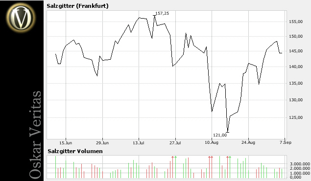 SALZGITTER - Bullischer Ausbruch, Rallye bis ... Datum 31.08.2007­ - Uhrzeit 14:13 (© BörseGo AG 2007, Autor: Paulus Alexander,­ Charttechn­iker, © GodmodeTra­der - http://www­.godmode-t­rader.de/)­