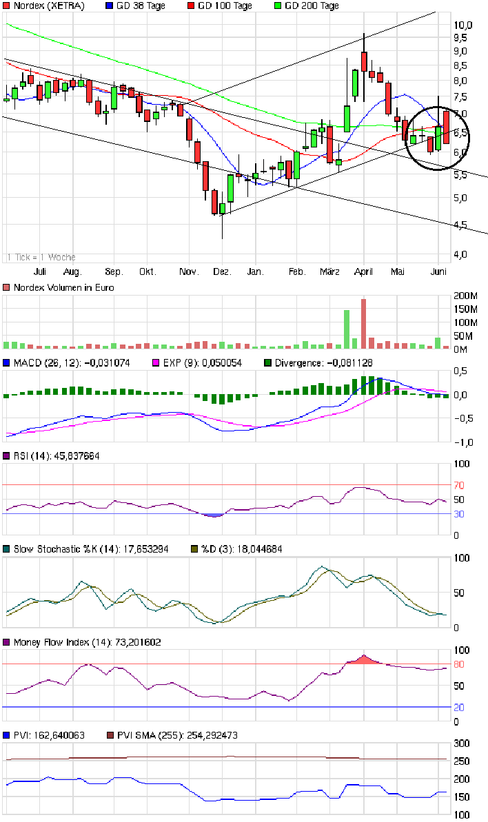 leider entfernt sich Nordex, gerade bei 6,28€ immer weiter von der 200 Tage-Linie, wie man das Signal deuten kann, hoffe nur das die 6,50 wieder erreicht werden