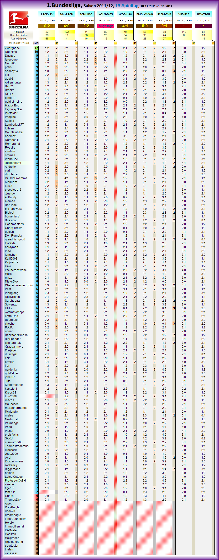 in Sachen Tagessiegerwertung, natürlich auch erst dann abgeschlossen, wenn das Spiel Köln-Mainz neu angesetzt wird...