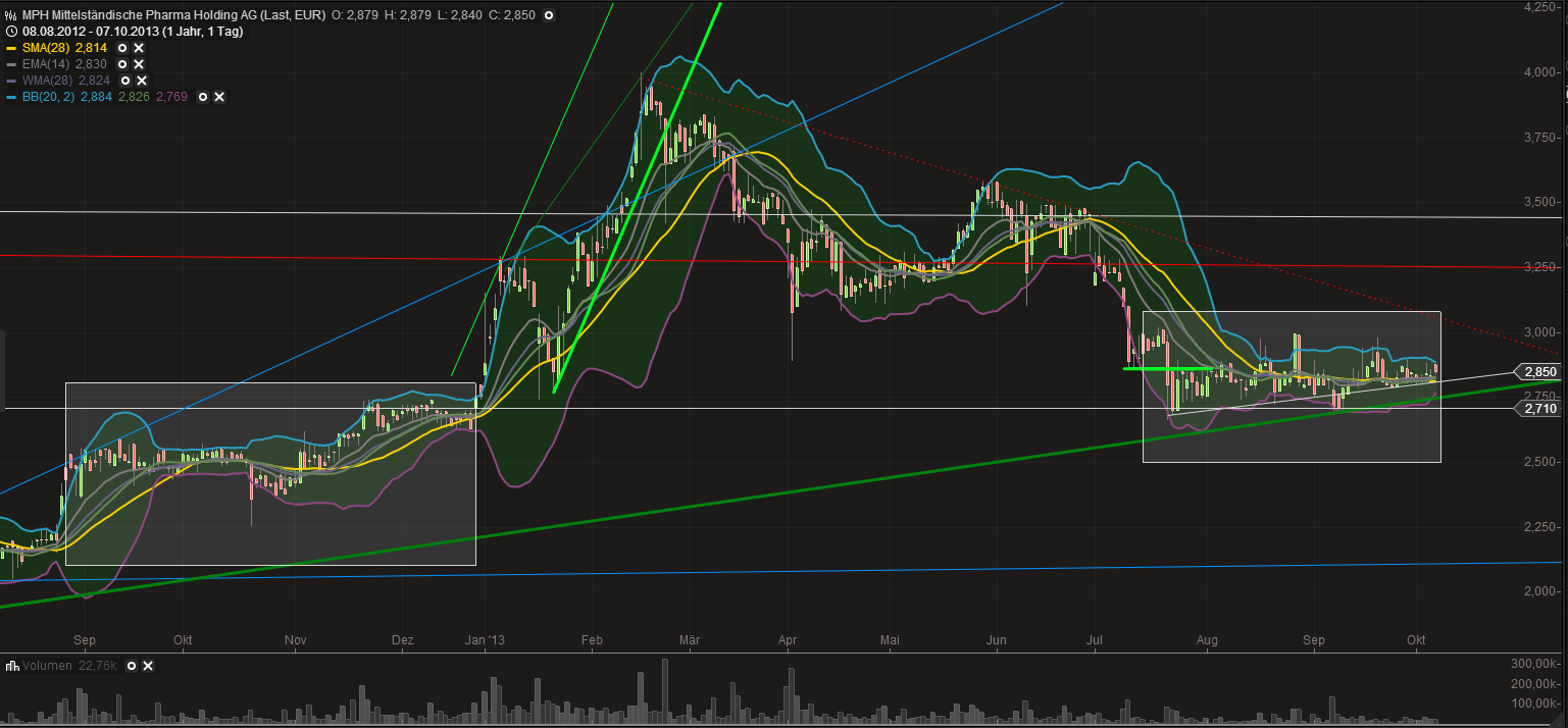 der mphKurse auf dem Niveou 2,80 - 2,85 geführt hat. Mph kann nicht weiter steigen , wegen der Rendite. Der nächste Dividenden-
