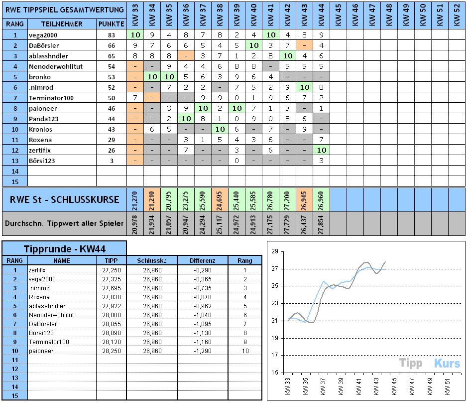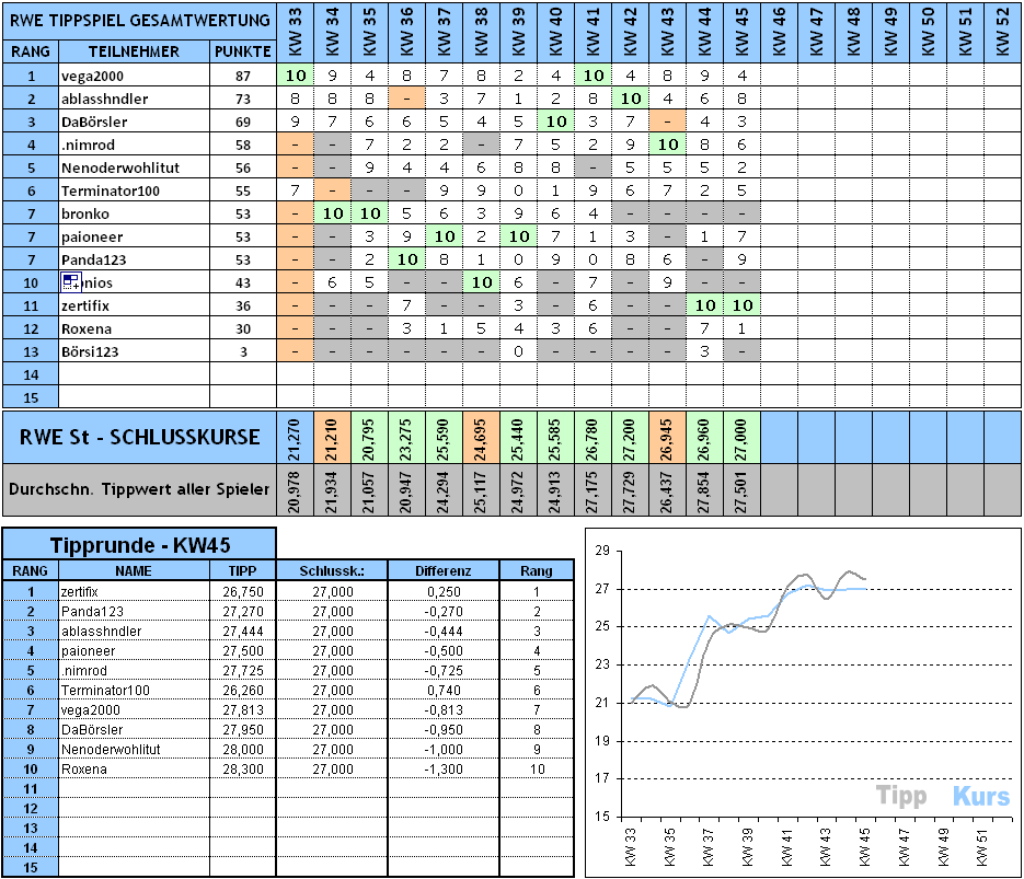 Tippliste für KW45 also wie folgt: 10 Spieler