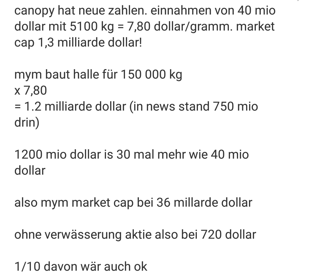 Langsam kommen mir an dieser Aktie die Zweifel, ob es sich nicht um eine pump and dump Aktie handelt. Ich habe vor allem keine Informationen/Bilder hinsichtlich dem aktuellen Baufortschritt gefunden. Das Gewächshaus Bild auf der Homepage ist von Alibaba kopiert und eingefügt worden. Wie soll die Halle in Weedon finanziert werden? Der Hauptsitz befindet sich in Vancouver in einem Gebäude, welches von außen nicht auf den Sitz von MYM schließen lässt. Über entsprechende Informationen wäre ich sehr dankbar.