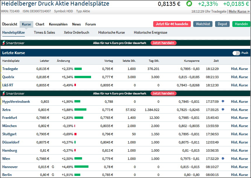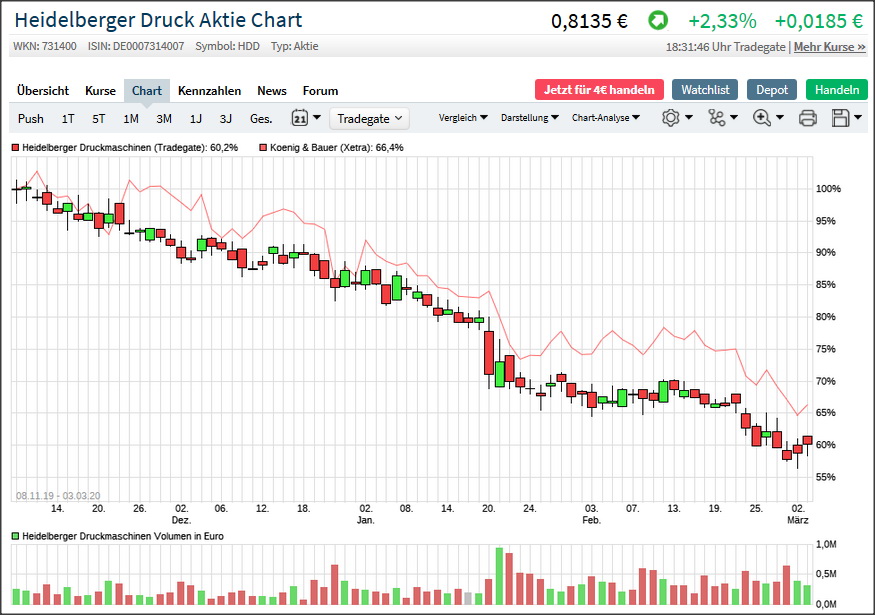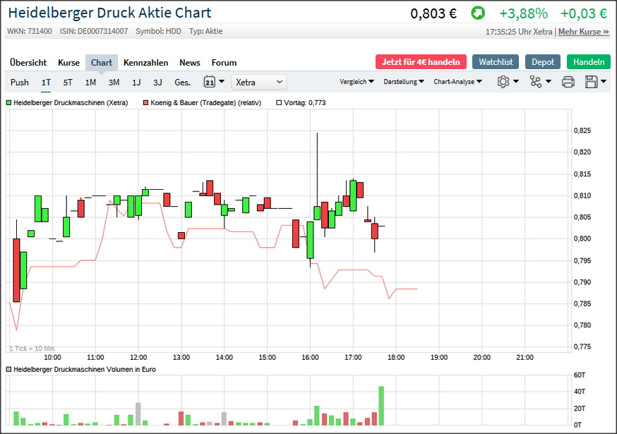 0,811 Heidelberger Druckmaschinen +5% - super!