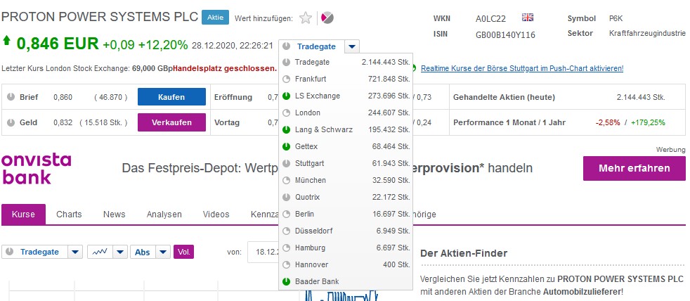 Wir haben Nachholbedarf im Vergleich zu Plug, Ballard, AFC und Powercell. Habe das Gefühl, dass jetzt auch Fonds und größere Investoren bei Proton einsteigen. Der Umsatz gestern war schon toll.