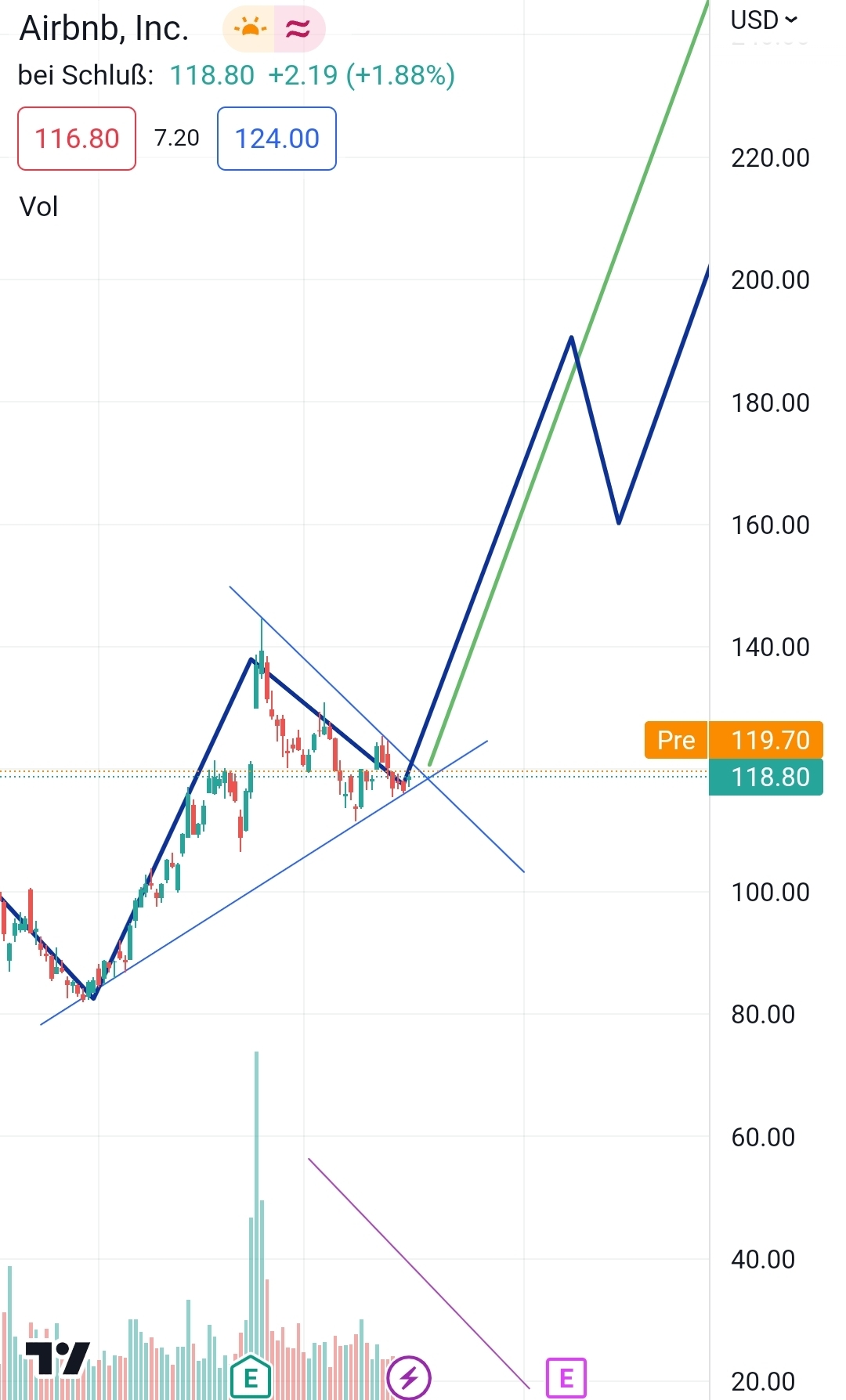 Der Kurs ist zunehmend häufig grün, die Volumina nehmen zu. Anfang Mai kommt der Q1-Report und ich hoffe, dass aufgrund der positiven Erwartungen und Meldungen der Kurs weiter zulegt. Also ich habe keine Lust, nach einem Ausstieg dem Kurs eventuell hinterherzulaufen und bleibe investiert. Ist nur die Frage, was nach Veröffentlichung der Q1-Zahlen passiert. Die Reaktion wird vermutlich deutlich sein. Fraglich nur ob positiv oder negativ, abhängig davon ob die hohen Wachstumserwartungen übertroffen werden oder nicht. ABNB hat aber die Erwartungen aber meist so gesetzt, dass sie übertroffen werden können.