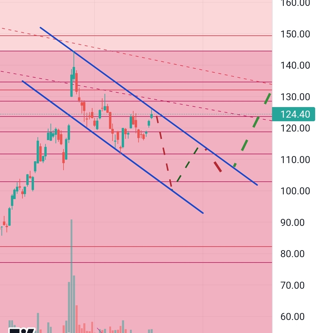 sogar theoretisch 90/85 Dollar vllt auch weniger wenn er übertreibt drin wären. Aber ich will jetzt nichts hier vorwegnehmen. Genauso kann er auch einfach wieder steigen. Es steht m.M 60/40 für Short richtung 100. Um jetzt wirklich neues Potential freizuschalten müsste Sie über die 133 hinaus. Und das sieht nicht ao aus immo