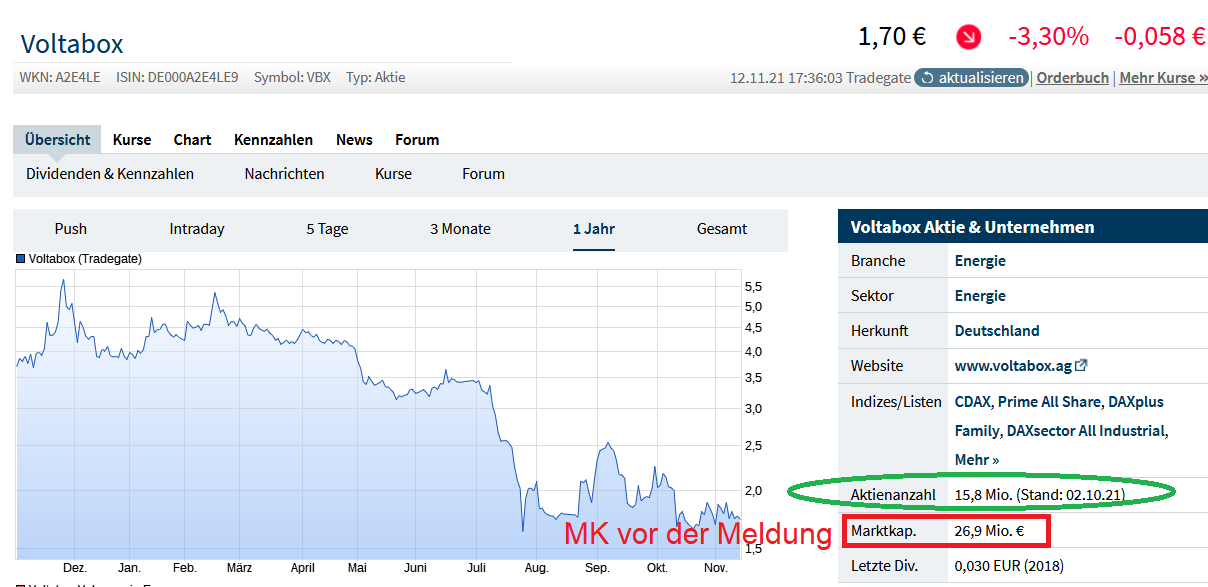 18.10.2021 - ".....Die Voltabox-Beteiligung steht seit Jahren unverändert mit 1,13 Euro je Aktie in den Büchern von Paragon..."