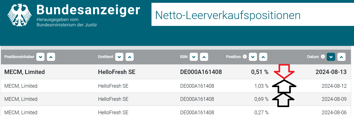 Da hat sich der LV MECM wohl etwas verzockt Der Leerverkäu­fer MECM hat ja in den Tagen direkt vor den Zahlen seine LV Position schnell und deutlich ausgebaut auf über 1%. Und nachdem die Zahlen gestern zu gut/zu wenig schlecht waren, hat er schlagarti­g die Position gestern um etwas über ein halbes Prozent wieder reduziert.­ Das was kein gutes Geschäft. Aber LV sind ,wie auch ganz normale Long-Anleg­er, am Ende nur Spekulante­n die Wetten auf die Zukunft eingehen und wo niemand die Zukunft wirklich kennt ;) Was man aber natürlich beeinfluss­en kann ist die Höhe mit der man solche Wetten eingeht.