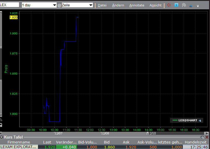 Gestartet mit ca. CAD 7.50, dann auf unter CAD 1.00 gesunken, nur um aktuell wieder bei etwa CAD 7.50 zu stehen. Und das innerhalb eines Zeitraumes von mehr als 4 Jahren. Wenn die entsprechenden Explorationsergebnisse fehlen und/oder keine profitable Produktion stattfindet, spiegelt es sich im Kursverlauf eines Explorationswertes wider.