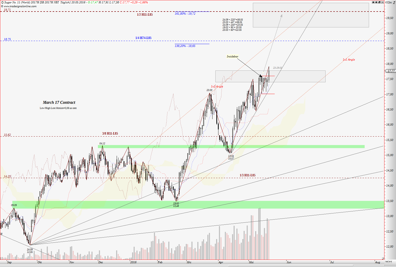 Klar könnte es weiter gehen als 18 ct. Allerdings erwarte ich bei 18 ct. eine Korrektur bis in den Bereich von ca. 16 ct. Wir werden sehen, ob es eintritt oder nicht.