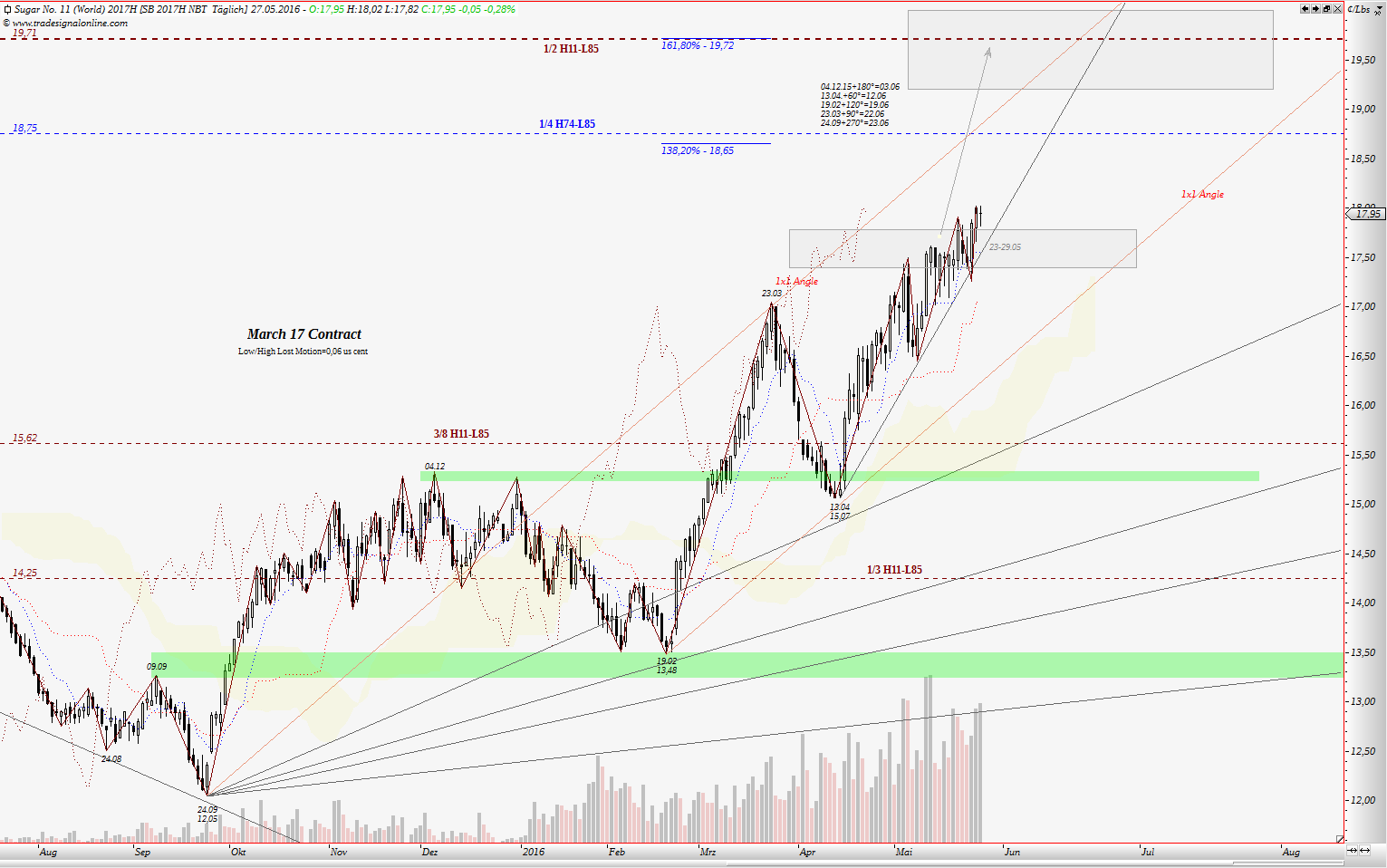 Dann wird es noch lange nicht Schluss sein, wenn das jetzt geschrieben wird. Schluss ist erst dann, wenn alle zum Einstieg raten. Ich bin jedenfalls sehr zufrieden mit der Entwicklung des Zuckerpreises und hoffe, dass diejenigen, die auf short gesetzt haben nicht allzu viele Verluste zu verkraften haben.