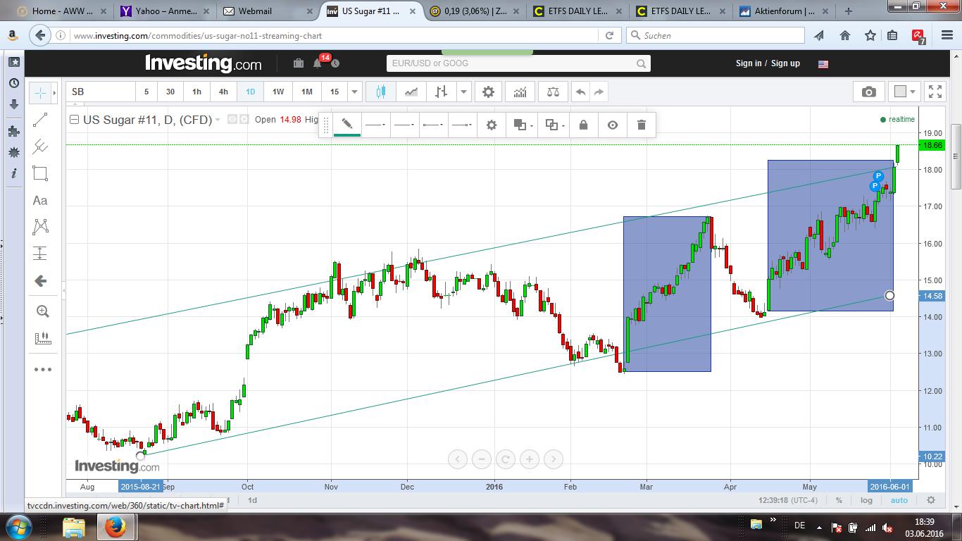 Nur noch 0,5 ct bis zu meinem Ziel, 18 ct. Mein Zuckerinvestment liegt schon mit 30 % gut im Plus.