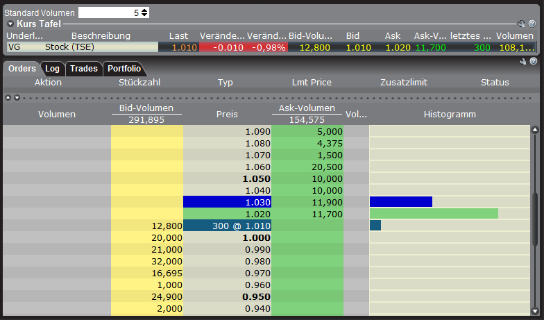 Aber: Ask auf 1.03 Kurs auf 1.02 ... a never ending story oder passender