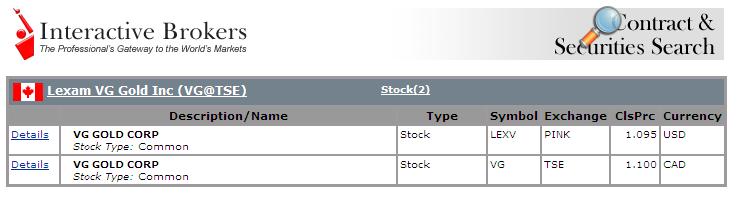 LEXAM VG GOLD INC - LEX:TSX