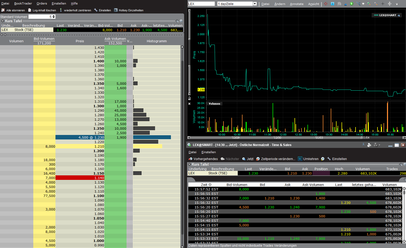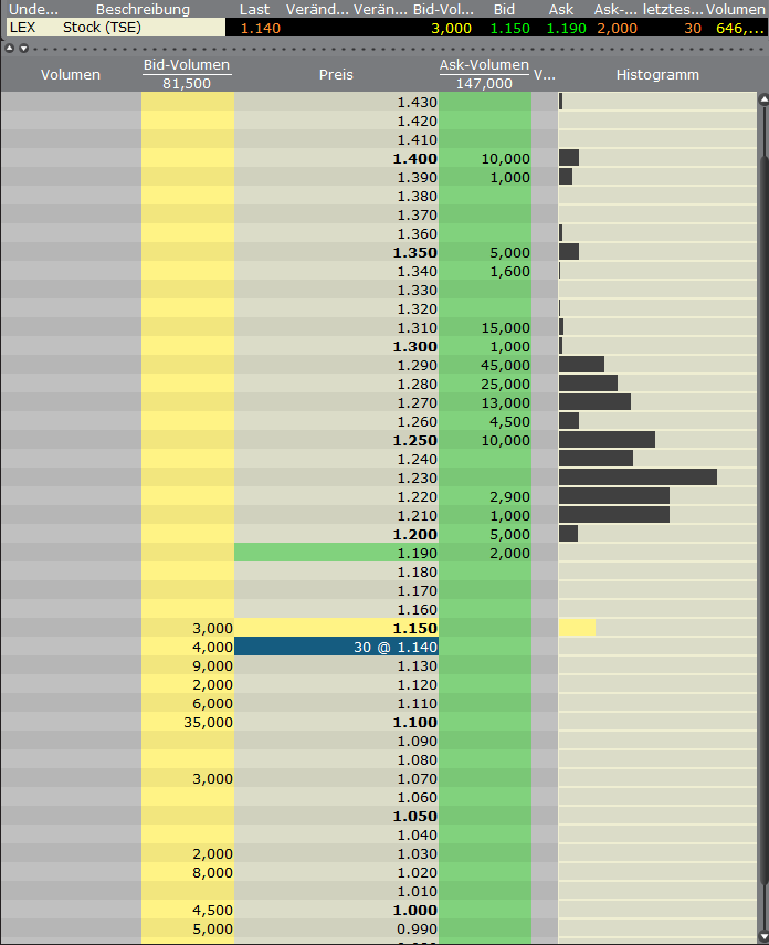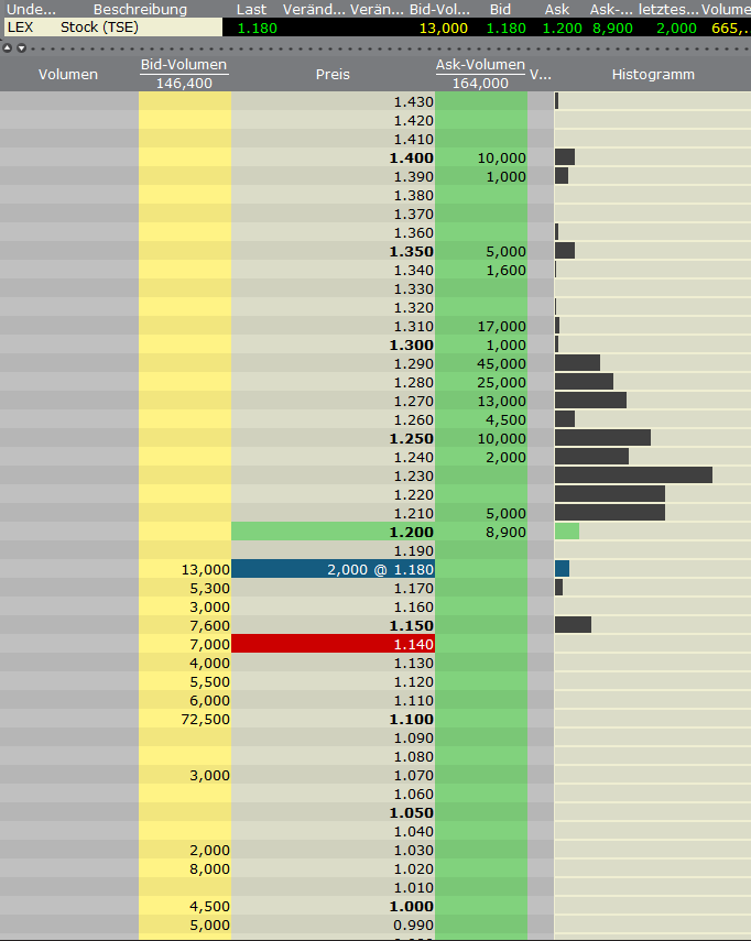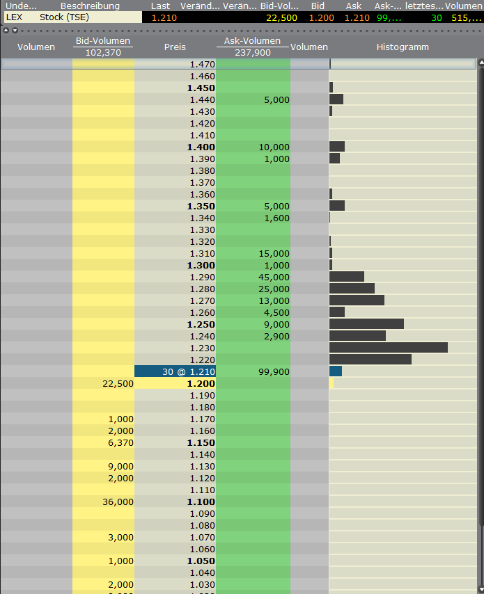 Bid 0,93 gegen Ask 1,0 DAB zeigt Realtime Handel mit Lexam VG Gold auf allen deutschen Börzenplätze