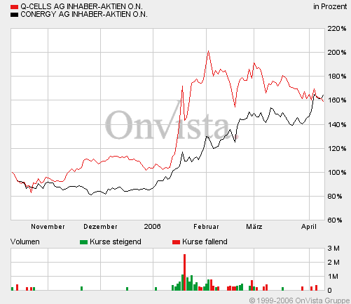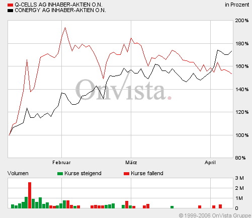 Da muss ich mich doch fragen, wieso sind Q-Cells so "lahm" geworden? Die haben ja die gleichen guten Daten und Ausblicke gestellt wie eben auch Conergy.