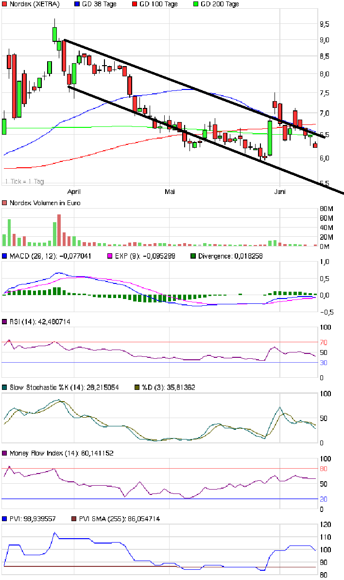 Wie gesagt. Nordex bewegt sich Richtung des alten Abwärtstrends, vielleicht kannst du ja das akzeptieren.