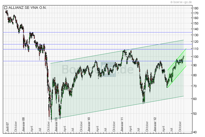 Bei der Allianz sieht das Geschäftsmodell allerdings etwas anders aus, weswegen die anhaltende Niedrigzinsphase künftig wohl Probleme ergeben wird. Deswegen halte ich ehemalige Jahreüberschüsse von über 7 Mrd. Euro für eher unwahrscheinlich. Hier können wir uns schon glücklich schätzen, wenn sie die 5 Mrd. erreicht. Allerdings ist sie als Dividendentitel sehr gefragt. Jedoch wird bei steigendem Kurs und gleichbleibender Dividende von 4,50 € die Dividendenattrativität abnehemen. Deswegen vermute ich ein Ende bei 110 bis 117 Euro. Auch können erneute Europrobleme diesen Kurs wieder drücken. Doch momentan sieht der Chart gut aus.