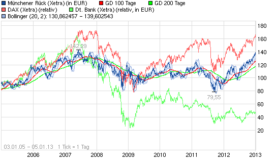 3 Jahres-Chart mit Vergleich Münchener Rück und Dax hier von ariva: