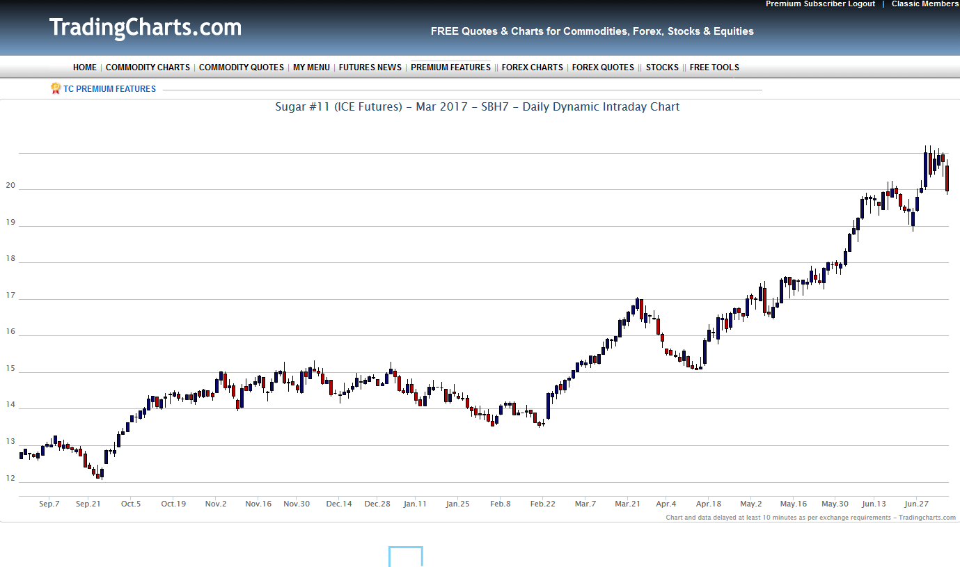 Da gegenwärtig der Oelpreis wieder fällt, könnte das noch eine Weile so gehen. Ein Korrektiv, dass gegenwärtig das Angebot von Zucker erhöht. In sofern ist der Rücksetzer auch fundamental gerechtfertigt. Andererseits wird in Asien und der arabischen Welt auch kräftig Zucker importiert. Aber es dürfte wohl etwas dauern, bis der Zuckerhut in Brasilien wieder zurückgeht. Den Winter über ist aus Asien nicht viel zu erwarten. Da könnten dann demnächst wieder die Preise anziehen. So erklärt sich auch die Differenz zwischen Oktober und März kontrakt. Es wäre schön, wenn der Real sich weiter erholt und der Oelpreis wieder anzieht. Beides zusammen könnte den Anstieg dann verstärken. Es bleibt also nur: Abwarten und die Märkte beobachten.