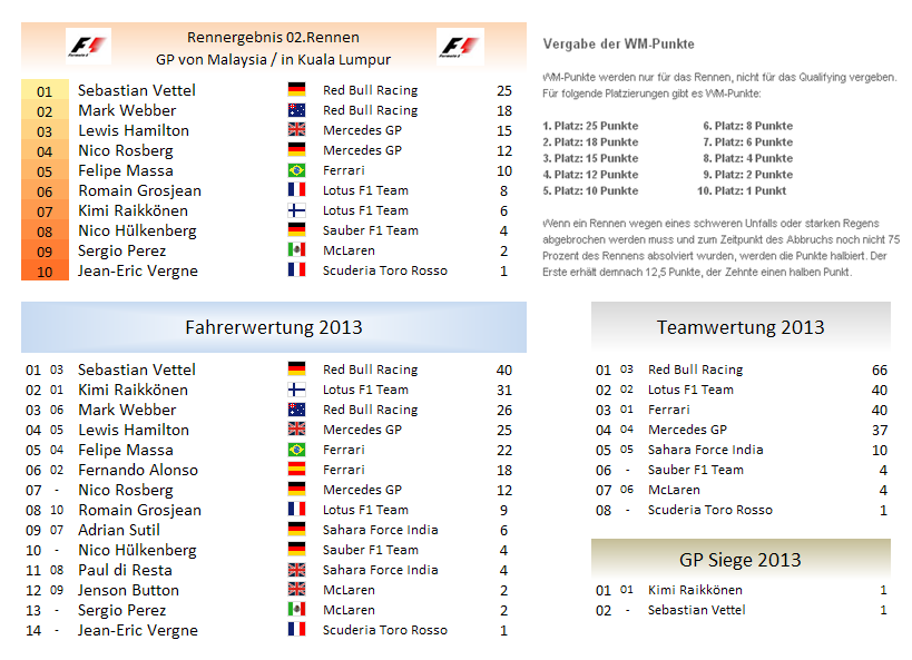 des Ignorierens der Stallorder (klare Ansage: "Multi 21") sowie den Fakt, dass Weber theoretisch bereits unlängst auf und davon gewesen wäre, wenn er nicht nach 4/5 des Rennens die Order bekommen hätte, Gas rauszunehmen, den Motor zu schonen und quasi nur noch bei 80-85% zu fahren. Daher ja auch seitens des Teams die klare Ansage, dass die 2 vor der 1 bleibt. Das alles wusste Vettel...und ist dennoch nicht nur volles Risiko gegangen, sondern sich auch seinen Teamkollegen gegenüber mehr als unfair und respektlos gegenüber verhalten.